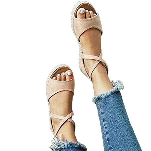 Onsoyours Sandali con Plateau E Cinturino alla Caviglia da Donna Espadrillas Zeppa in Pelle Scamosciata Punta Aperta Sandali Cachi 35 EU