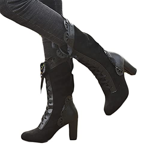 Onsoyours Stivaletti da Donna alla Moda con Lacci e Comodi Stivali da Donna Autunno e Inverno con Tacco Alto in Pizzo Nero 35 EU