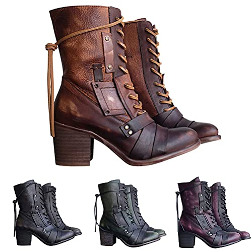 Onsoyours Stivaletti da Donna Alla Moda con Lacci e Comodi Stivali da Donna Autunno e Inverno con Tacco Spesso Nero 39 EU
