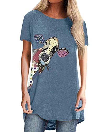 Onsoyours T-Shirt Maglietta Donna Estive Elegante Maniche Corte Divertente con Stampa Casual Blusa Tinta Unita Girocollo Camicetta Tops Tee E Blu XS