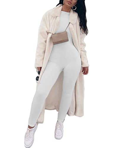 Onsoyours Tuta Aderente a Maniche Lunghe/Senza maniche da Donna Tinta Unita Jumpsuit Playsuit Pantaloni Tutina Sportivo Intero Pagliaccetti Monopezzi A Bianco XS