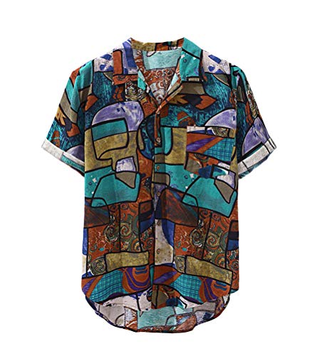 Funky Camicia Hawaiana da Uomo, Maniche Corte,Colourful Camicia hawaiana, La piccola tasca anteriore pratico, è possibile, senza nulla dover portare piccoli oggetti di infilarsi in tasca.