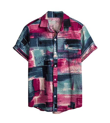 Funky Camicia Hawaiana da Uomo, Maniche Corte,Colourful Camicia hawaiana, La piccola tasca anteriore pratico, è possibile, senza nulla dover portare piccoli oggetti di infilarsi in tasca.
