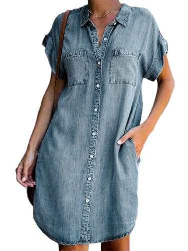 Onsoyours Vestiti Jeans Donna Estivi Vestiti Donne Camicetta Lunga Vestiti Donna Estivi Camicia Donna Maniche Corte Estate Blu Casual Vestito Scoll A V Camicia Vestito Denim 1 Blu S