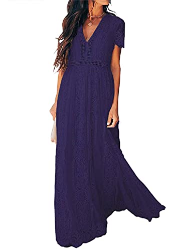 Onsoyours Vestito da Donna A Maniche Corte in Pizzo Abito da Sposa Lungo Sera Abiti da Elegante Damigella d'Onore Partito A Blu Navy XS