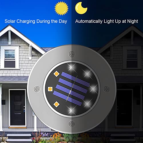 ONSTUY Faretti Solari a LED de Esterno,12 LEDs Luce Solare da Giardino,IP65 Impermeabile Faretto Giardino Solare per Vialetto Scala Cortile Paesaggio Prato,Bianco Freddo(8 Pezzi)