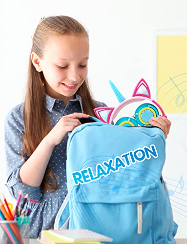 ONTA Cuffie per Bambini Over Ear LED Luminose Pieghevoli con Orecchie da Gatto, Leggere, Splendore Unicorno On-Ear Cuffie per ragazzo/ragazza per Scuola, Casa (polvere blu giallo)