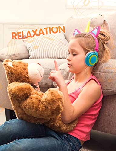 ONTA Cuffie per Bambini Over Ear LED Luminose Pieghevoli con Orecchie da Gatto, Leggere, Splendore Unicorno On-Ear Cuffie per ragazzo/ragazza per Scuola, Casa (polvere giallo)