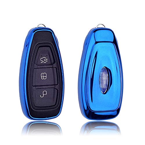Ontto Cover Custodia Protettiva per Chiave Ford Portachiavi Auto in Silicone Morbido per Fiesta Focus Galaxy Fusion Mondeo C-Max S-Max Kuga Ecosport Guscio Protettivo coprichiave con 3 Tasti-Blu