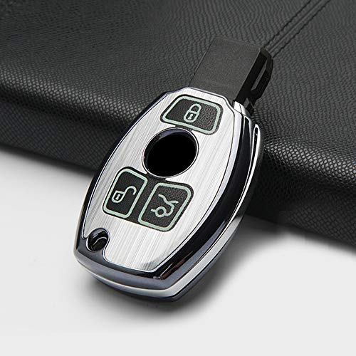 Ontto Cover Custodia Protettiva per Chiave Mercedes Portachiavi Auto in Lega di Alluminio per Mercedes Benz A B C E S ML GLA GLC GLK CLA CLS Classe Guscio Protettivo Coprichiave con 3 Tasti-Argento