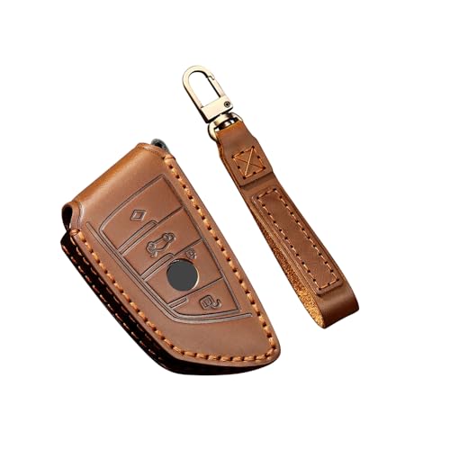 Ontto Cover Guscio per Chiave Telecomando Auto Adatto per BMW Serie 1 3 5 7 X1 X3 X4 X5 X6 F30 E30 G11 G30 Keyless Coprichiave in Pelle Custodia Protezione con Portachiavi 4 Tasti-Marrone A