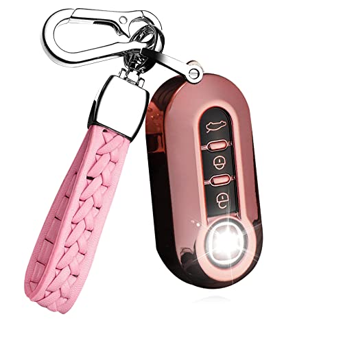 Ontto Cover Guscio per Chiave Telecomando Auto Adatto per Fiat 500 500C 500L 500X Ducato Punto Bravo Panda Lancia Grande Stilo Linea Coprichiave in TPU Custodia Protezione con Portachiavi-Rosa