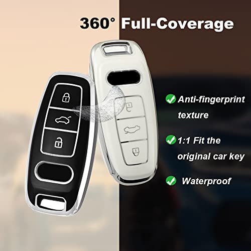 Ontto Custodia per Chiave Auto, Adatta per Audi A6L A7 A8 Q8 E-Tron A4 C8 Q8 D5 E-Tron S3 A3 e-Tron Sportback Q7 60 TFSI TPU Silicone Custodia Portachiavi Argento Grigio