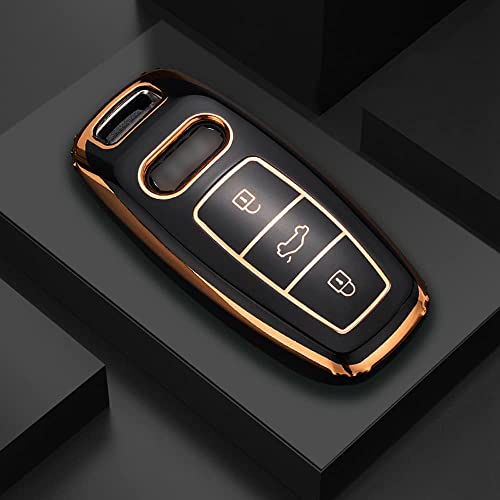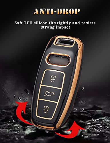 Ontto Custodia per chiave auto in TPU adatta per Audi A3 A6 A7 A8 A8L Q8 E-Tron Q5 Q8 C8 D5 RS6 RS7 S3 S6 SQ7 SQ8 telecomando cover coprichiave portachiavi 3 tasti nero