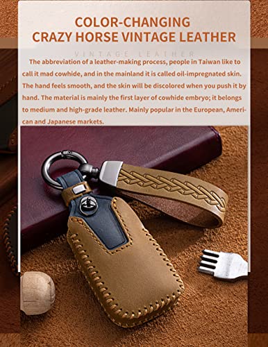 Materiale: la custodia per chiavi dell'auto è realizzata in pelle bovina di alta qualità (nome di punta, Crazy Horse Leather). È cucito a mano da esperti artigiani. La leggera pressione sull'epidermide crea un effetto scolorimento. Raschiare la superficie in pelle con chiodi lascia evidenti graffi, ma dopo averla pulita più volte i graffi scompariranno.