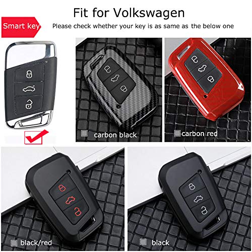 Ontto - Custodia per Chiave Auto per VW Magotan Passat B8 CC Golf Tiguan MK2 Jetta Skoda Superb A7 Kodiaq in Lega di Zinco Portachiavi Nero Rosso
