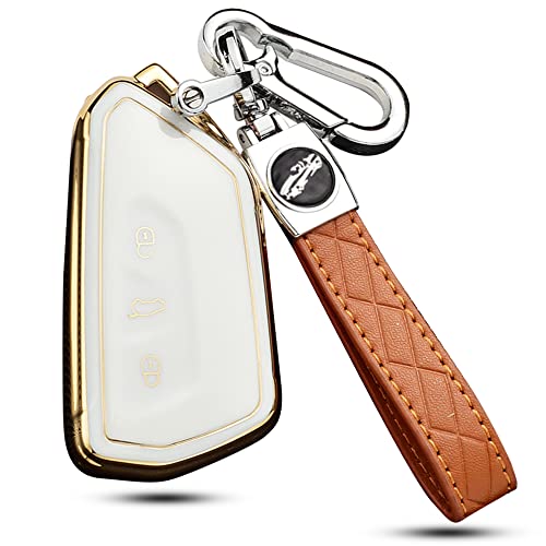 Ontto Custodia per chiave auto con portachiavi adatta per VW Golf 8 R GTI ID.3 ID.4 ID.6X Seat Leon MK4 Skoda Octavia Enyaq 2020-2022 telecomando cover chiavi 3 tasti beige