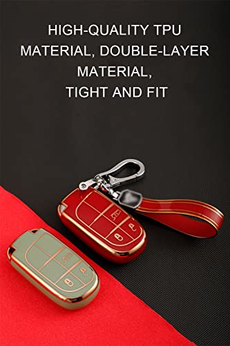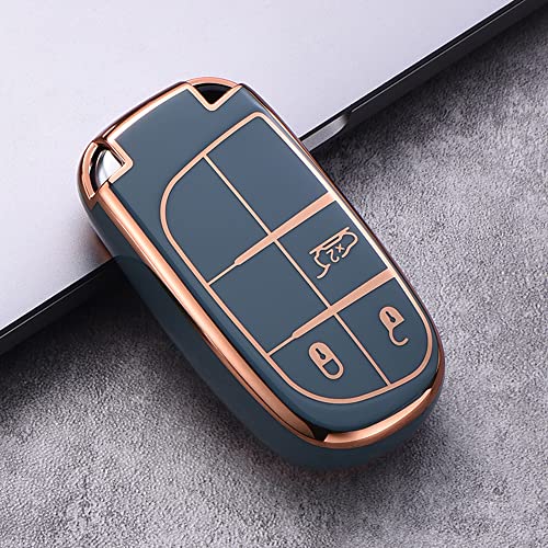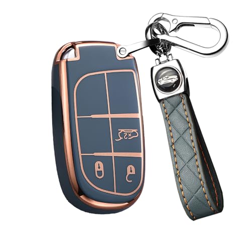 Ontto Custodia per chiave auto con portachiavi adatta per Fiat 500X Jeep Renegade Grand Cherokee Dodge Journey Charger Chrysler 200 300 300C telecomando cover TPU custodia chiave grigio