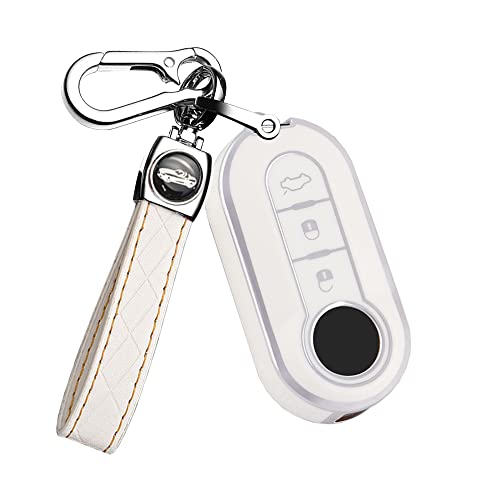Ontto Custodia Pieghevole per Chiave dell'auto, Adatta per Fiat Lancia 500X 500C Punto Panda Ypsilon Delta Bravo Peugeot Accessori Bordo Argento Custodia Portachiavi TPU Bianco