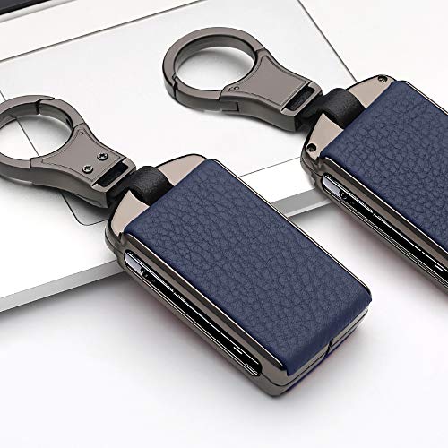 Ontto Custodia Protettiva per Chiave Intelligente in in Lega di Zinco e Pelle Portachiavi per Volvo XC60 XC70 XC90 S60 S80 S90 V90 3 Pulsante Guscio Protettivo coprichiave-Nero Blu