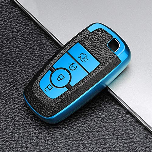 Ontto Guscio Cover per Chiave Telecomando Auto per Ford Fusion Edge Mustang Mondeo F150 Explorer Expedition Ecosport 20172019 Coprichiave in TPU e Pelle Custodia Protettivo Portachiavi 4 Tasti-Blu