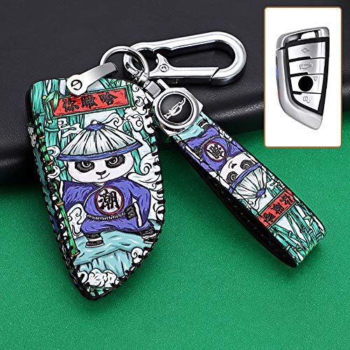Ontto Guscio Cover per Chiave Telecomando Auto per BMW X1 X3 X5 X7 F15 X6 F16 G30 G11 X1 F48 F21 Serie 1 2 5 7 218i Coprichiave in Pelle Custodia Protettivo Portachiavi 4 Tasti-Panda A