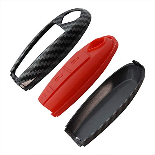 Ontto Guscio Cover per Chiave Telecomando Auto per Suzuki Vitara Swift Ignis Kizashi SX4 Baleno Ertiga Samurai S-Cross Coprichiave in Plastica Custodia Protettivo Portachiavi 3 Tasti-Rosso Carbonio