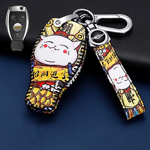 Ontto Guscio Cover per Chiave Telecomando Auto per Mercedes A B C E S CLK ML Klasse W245 A209 W212 W204 (Solo Keyless Go) Coprichiave in Pelle Custodia Protettivo Portachiavi 3 Tasti-Gatto Fortunato