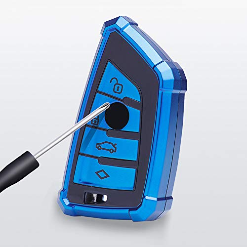 Ontto Guscio Cover per Chiave Telecomando per BMW Serie 1 2 5 7 X5 F15 F48 X6 F16 F86 G30 X1 F48 F21 218i 4 Tasti in TPU Morbido Custodia Protettivo Coprichiave con Portachiavi-Blu