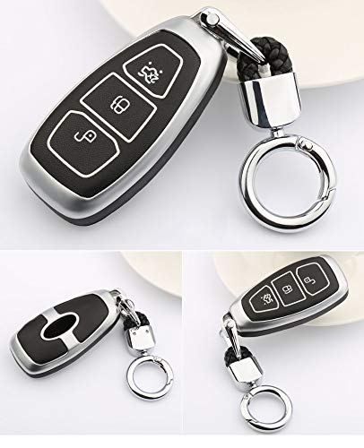 Ontto Smart - Custodia per Chiave Auto per Ford Focus Fiesta Fusion Galaxy Kuga B-Max Mondeo Ecosport in Lega di Zinco, 3 Tasti, Colore: Argento