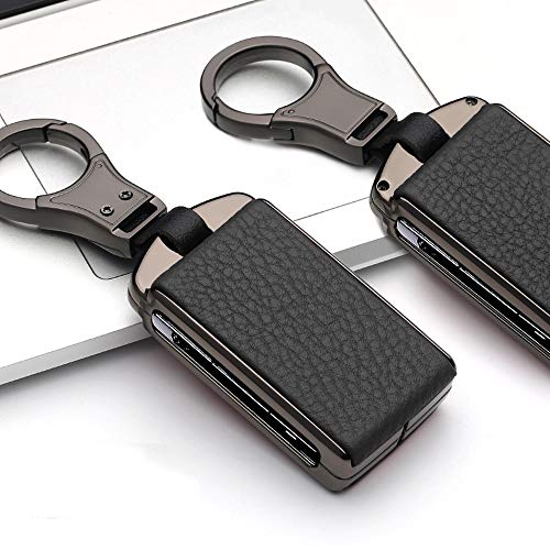Ontto 3/4 Tasti Guscio Cover per Chiave Telecomando per Volvo XC60 XC70 XC90 S60 S80 C30 V70 S90 V90 2017 2018 in Lega Zinco Pelle Custodia Protettivo Coprichiave Portachiavi-Nero