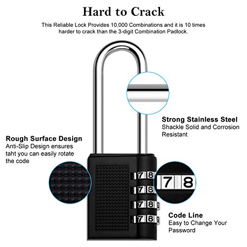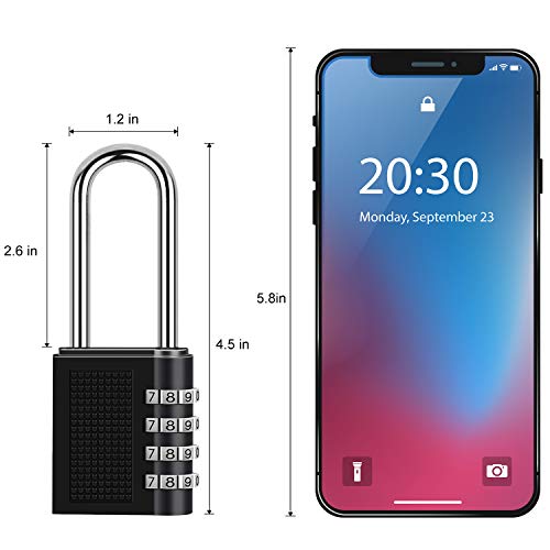 Onuemp Lucchetto con combinazione, lungo, per serrature armadietto, a prova di intemperie, resistente, con quadrante a 4 cifre liscio, per scuola, palestra, esterno, cancelli, armadi, nero, 2 pz.