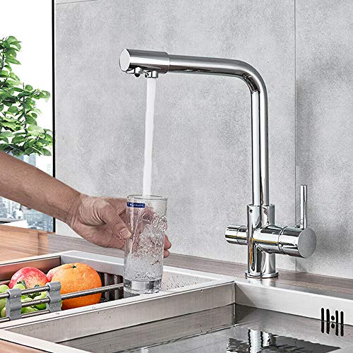Onyzpily - Rubinetto da cucina con filtro a 3 vie, cromato, a doppia maniglia, per acqua potabile calda e fredda