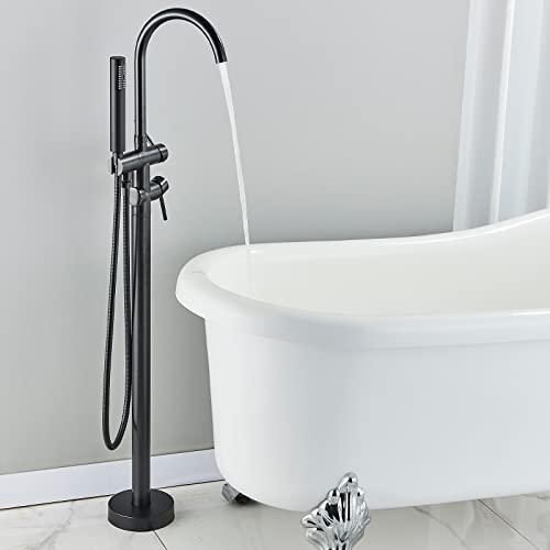 Onyzpily, Rubinetto a pavimento per vasca da bagno a 2 vie, nero, con miscelatore, doccino manuale ed erogatore a 360°, per acqua fredda e calda