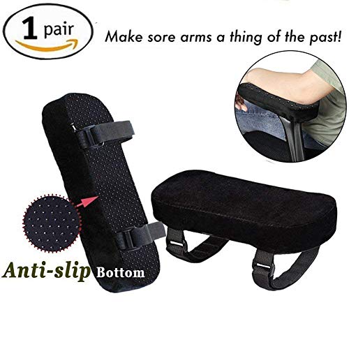 Ooage - Set di 2 braccioli imbottiti per sedie da ufficio, realizzati in schiuma a memoria di forma con rivestimento rimovibile in tessuto di qualità, con fissaggio universale tramite cinturini in velcro, dotati di comodo supporto per i gomiti