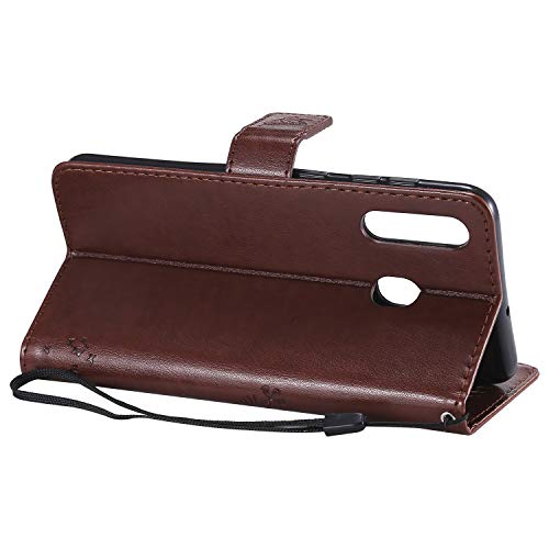 Ooboom Samsung Galaxy A20/A30/A50 Custodia Modello Albero Gatto Flip in Pelle PU Cuoio Copertura Case Cover Wallet Portafoglio Supporto per Samsung Galaxy A20/A30/A50 - Marrone