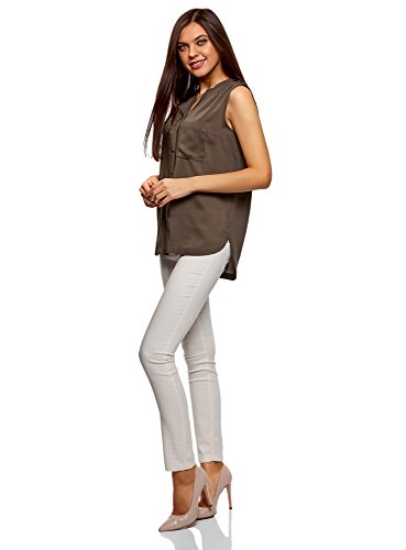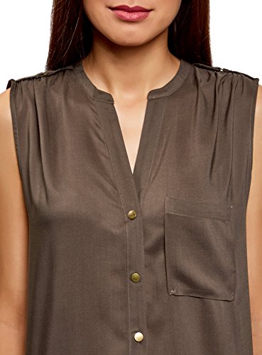 Oodji Collection Donna Blusa Senza Maniche con Bottoni Metallici a Pressione, Marrone, IT 44 / EU 40 / M