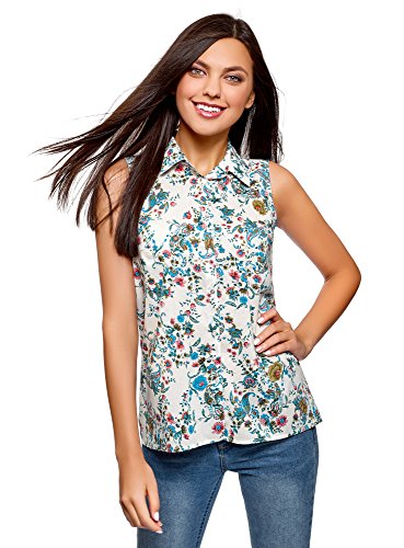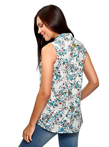 Oodji Collection Donna Camicetta Lunga in Cotone Stampato, Bianco, XS