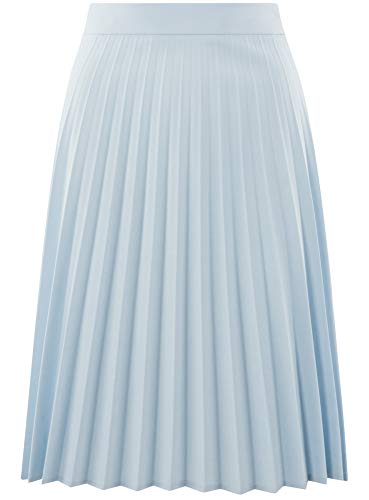 Oodji Collection Donna Gonna Plissettata al Ginocchio, Blu, IT 48 / EU 44 / XL