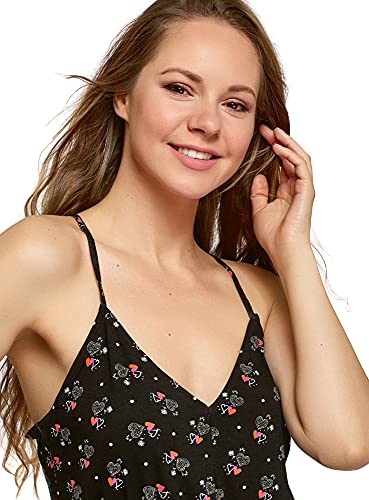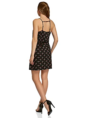 Oodji Ultra Donna Abito con Spalline Sottili in Viscosa, Nero, IT 44 / EU 40 / M