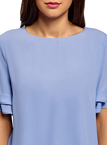 Oodji Ultra Donna Camicetta Ampia con Volant sulle Maniche, Blu, IT 38 / EU 34 / XXS