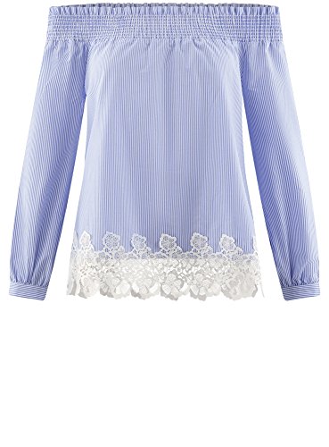 Oodji Ultra Donna Camicetta in Cotone con Finitura in Pizzo, Blu, M