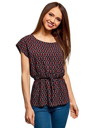 Oodji Ultra Donna Camicetta Stampata in Viscosa, Multicolore, XS