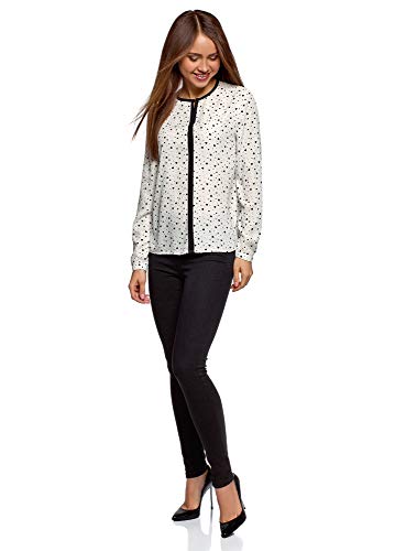 Oodji Ultra Donna Camicetta in Tessuto Fluido con Finiture a Contrasto, Grigio, XXS