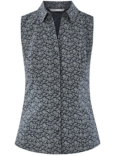 Oodji Ultra Donna Camicia Basic Senza Maniche, Blu, IT 42 / EU 38 / S