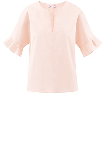 Oodji Ultra Donna Camicia in Cotone con Scollo a V, Rosa, XXS