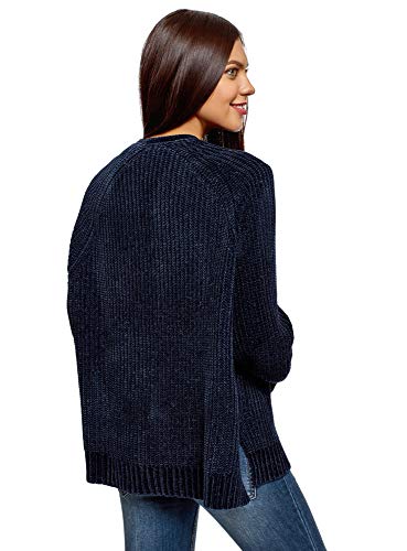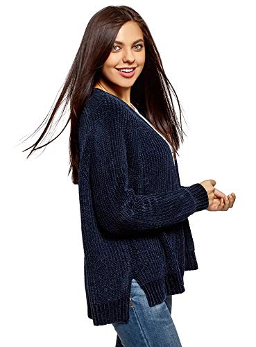 Oodji Ultra Donna Cardigan Dritto Senza Chiusura in Ciniglia, Blu, IT 48 / EU 44 / XL