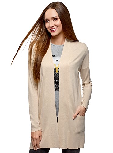 Oodji Ultra Donna Cardigan Senza Chiusura con Tasche Applicate, Beige, XS