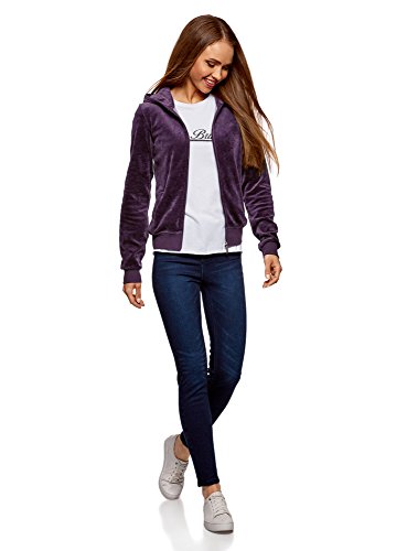 Oodji Ultra Donna Felpa con Cerniera e Cappuccio, Viola, IT 46 / EU 42 / L