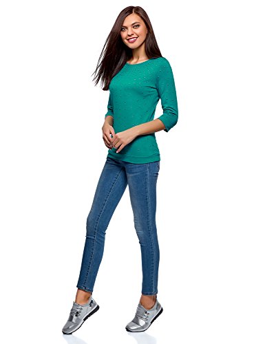 Oodji Ultra Donna Maglione con Strass in Metallo e Maniche a 3/4, Verde, IT 40 / EU 36 / XS